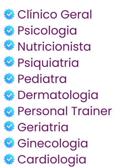 Atendimento médico 24h e consultas ilimitadas diretamente pelo Chat; +30 Especialidades;