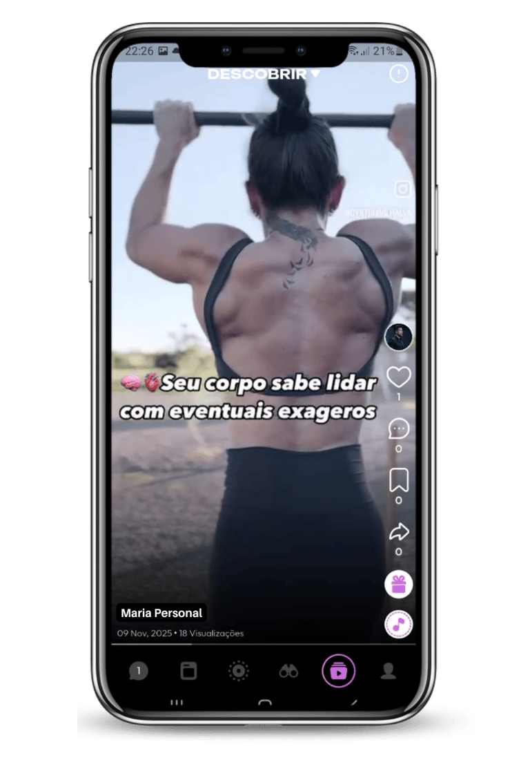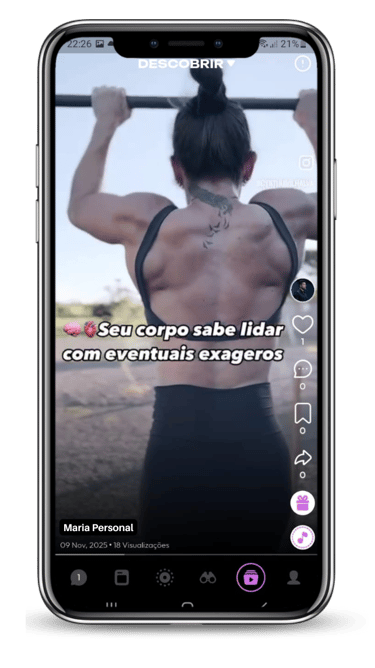 Treinos em video aulas gravadas e ao vivo de diversas modalidades para o usuário treinar em casa ou em qualquer lugar, de maneira rápida, ágil e fácil;