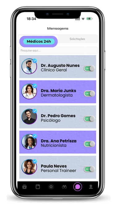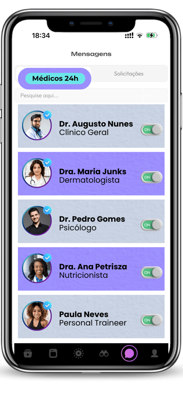 Porém, estamos convictos que não será necessário, pois sabemos que nossa tecnologia conecta você com profissionais éticos e qualificados para você ter uma experiência de qualidade, ágil e fácil, para sua saúde e de sua familia. Temos convicção que você tera uma grande transformação através de todo conteúdo de saúde & bem-estar, gerado pelos profissionais em nosso App;