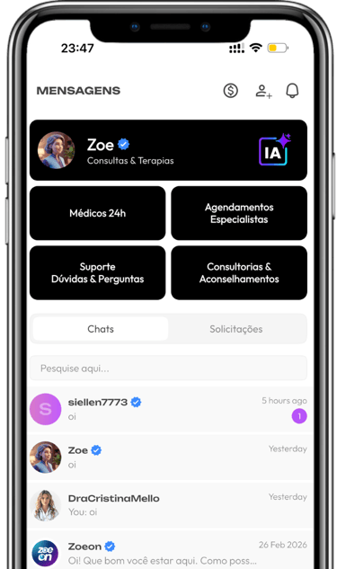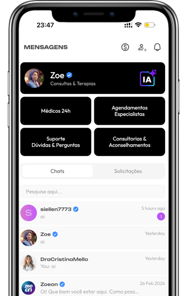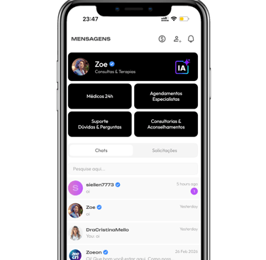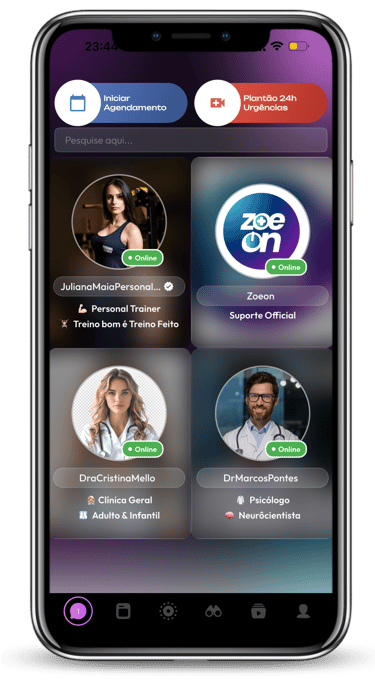 Porém, estamos convictos que não será necessário, pois sabemos que nossa tecnologia conecta você com profissionais éticos e qualificados para você ter uma experiência de qualidade, ágil e fácil, para sua saúde e de sua familia. Temos convicção que você tera uma grande transformação através de todo conteúdo de saúde & bem-estar, gerado pelos profissionais em nosso App;
