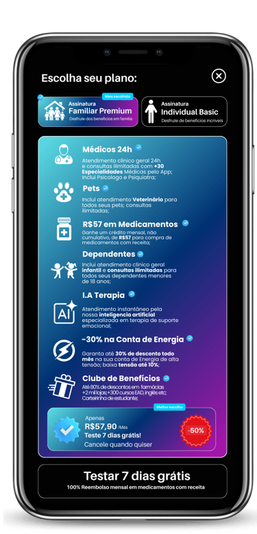 Ganhe até R$58 reais de reembolso de 100% do valor de sua assinatura em crédito diretamente no App todo mês para compras de medicamentos!