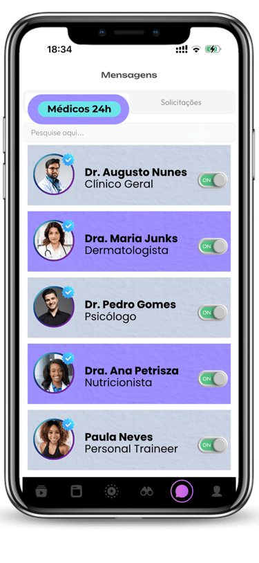 Porém, estamos convictos que não será necessário, pois sabemos que nossa tecnologia conecta você com profissionais éticos e qualificados para você ter uma experiência de qualidade, ágil e fácil, para sua saúde e de sua familia. Temos convicção que você tera uma grande transformação através de todo conteúdo de saúde & bem-estar e empreendedorismo, gerado pelos profissionais em nosso App, para a sua vida e sua família.